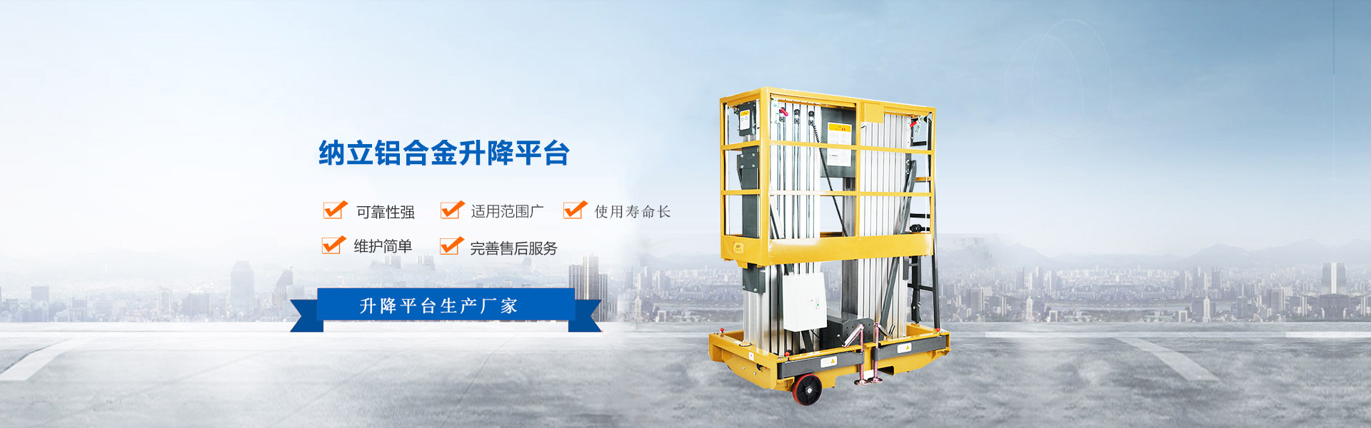寧波納立升降機(jī)械有限公司座落于經(jīng)濟(jì)沿海城市浙江省余姚,為工程機(jī) 械協(xié)會(huì)會(huì)員單位,是致力于高空作業(yè)平臺(tái)的設(shè)計(jì)、研發(fā)、生產(chǎn)及銷(xiāo)售為一體的綜 合性制造企業(yè),是專業(yè)生產(chǎn)液壓升降臺(tái)及高空作業(yè)平臺(tái)的廠家。創(chuàng)立至 今,擁有一支成熟的設(shè)計(jì)和制造隊(duì)伍,經(jīng)過(guò)長(zhǎng)期對(duì)液壓升降臺(tái)的研制和探索,積 累了豐富的專業(yè)制造技術(shù)和寶貴經(jīng)驗(yàn),依托嚴(yán)格的生產(chǎn)工藝和時(shí)代特色的設(shè)計(jì)方 案,憑借豐富的專業(yè)技術(shù)及納立人不斷開(kāi)拓創(chuàng)新、精益求精的精神,發(fā)展成為專 業(yè)制造液壓升降機(jī)械的優(yōu)質(zhì)聞名企業(yè)。